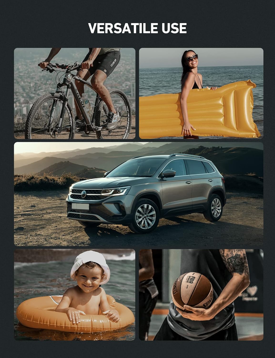 - Fast Inflation & 15-Minute Continuous Work: With dual metal motors and a metal cylinder, the tire inflator can continuously work for up to 15 mins. Large-volume mode provides a maximum inflation rate of 350 L/min, quickly inflating large items. High-pressure mode pumps up to 150 PSI, inflating a flat tire from 0 PSI to 36 PSI in 6 minutes. Compatible with cars, bikes, sedans and mid-sized SUVs. NOTE: This pump is incompatible with heavy-duty trucks.