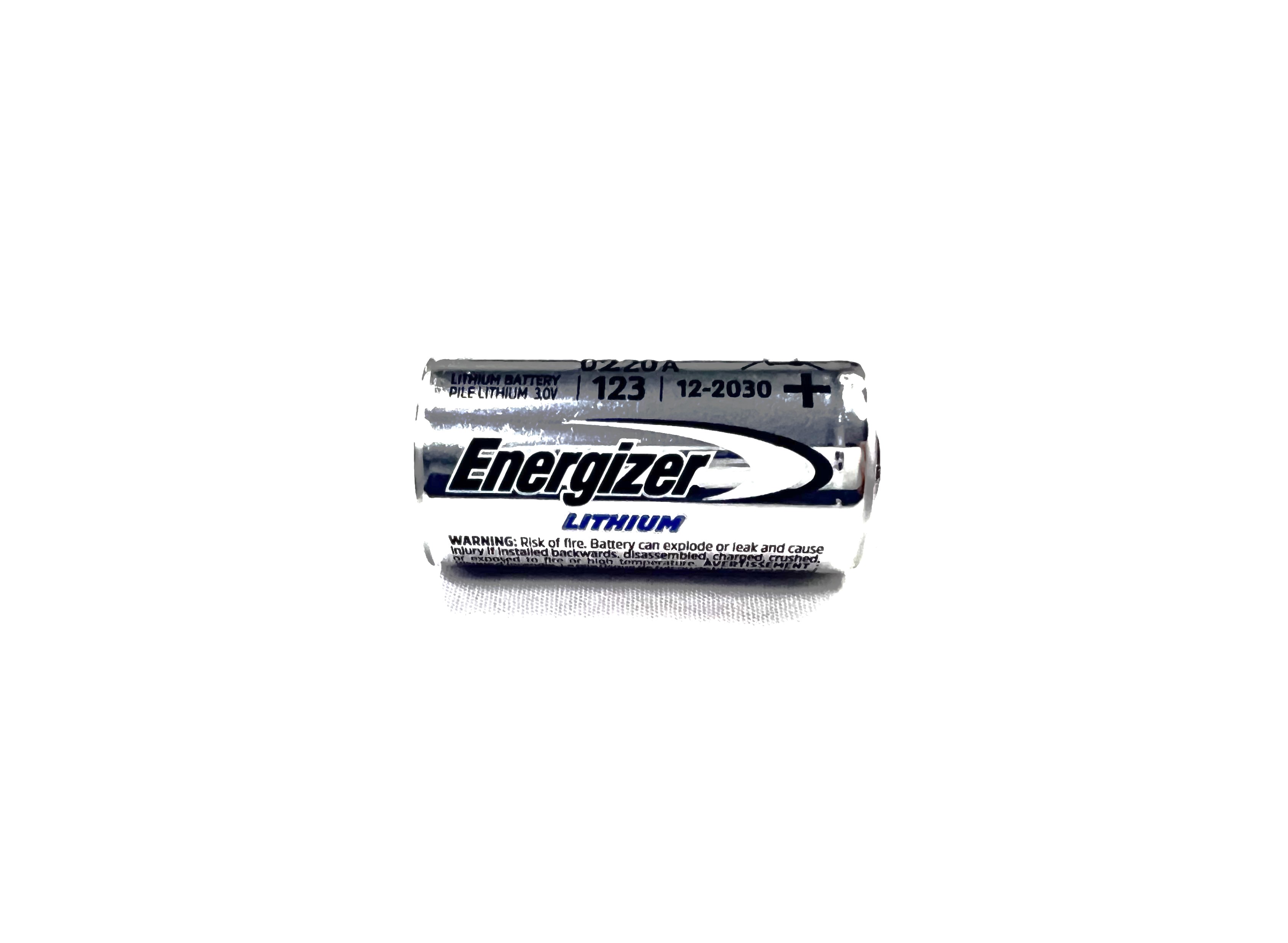 Energizer CR123A in bulk packaging.